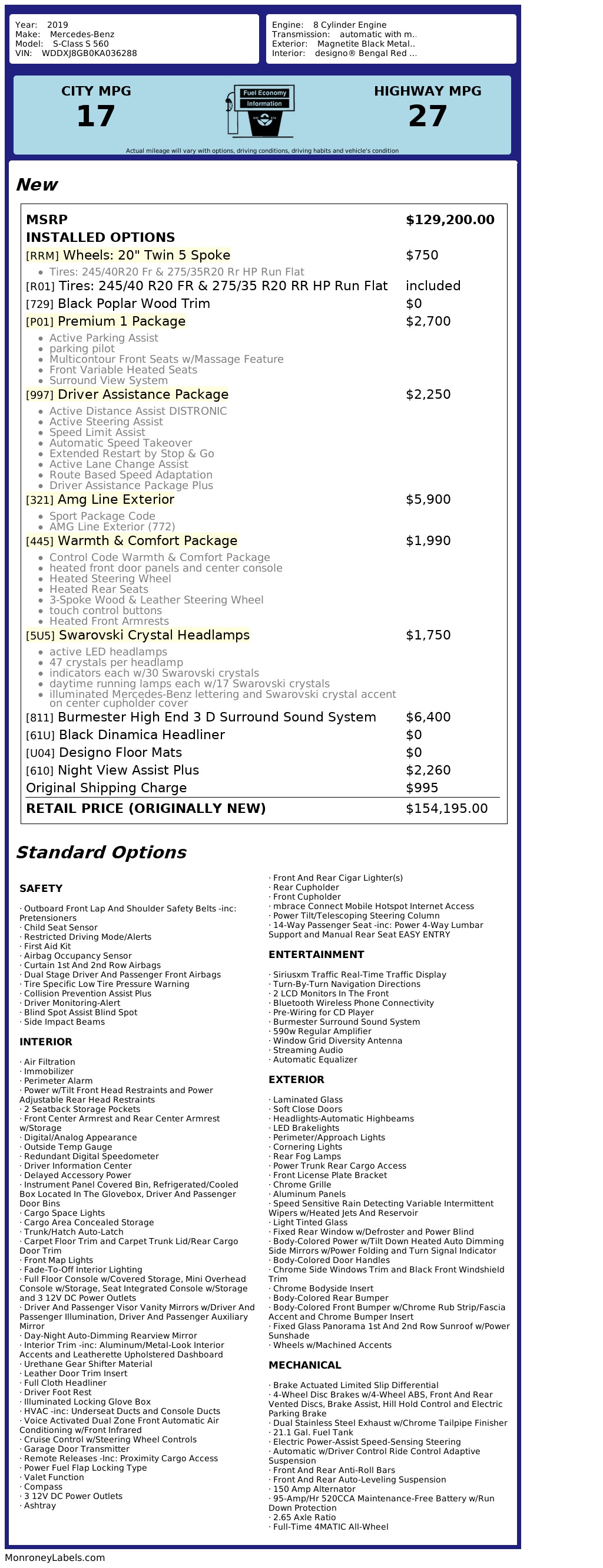 LOADED • SWAROVSKI CRYSTAL PKG • PREMIUM 1 PKG • DRIVER ASSISTANCE PKG • AMG LINE • COMFORT PKG