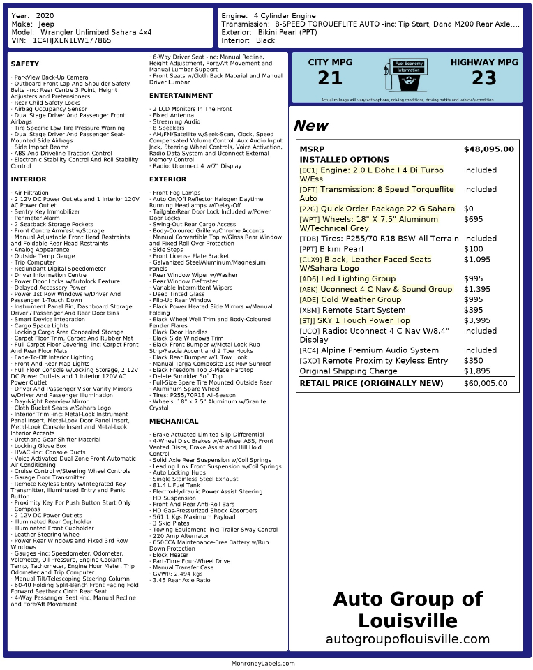 Powered by a dependable engine with Auto Stop-Start Feature, this Wrangler also boasts an impressive 3.45 Rear Axle Ratio to maximize performance. Whether you're cruising through the city or conquering rough trails, this Jeep is up for the challenge.